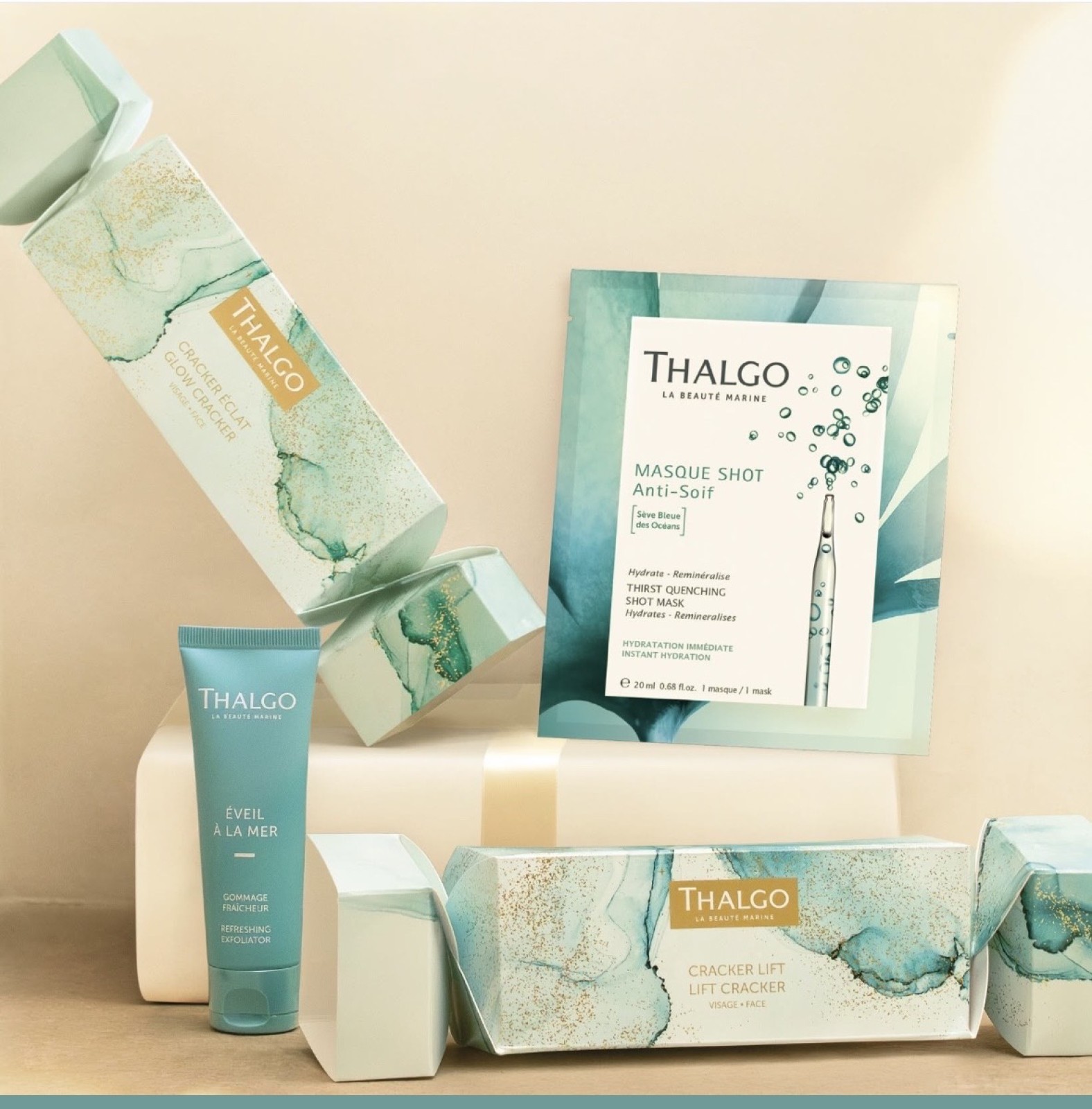 Les Laboratoires Thalgo ont associé un pro-collagène marin capable de stimuler la synthèse des collagènes I, III et IV à 3 acides hyaluroniques de poids moléculaires complémentaires pour corriges efficacement , rapidement et visiblement les rides.